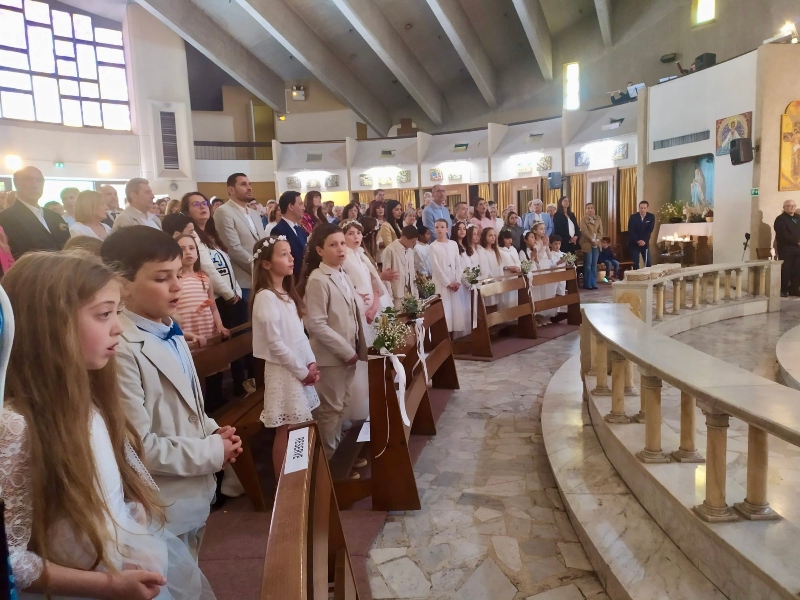 Dimanche 27 avril, 16 élèves du primaire ont fait leur première communion. Cela a été aussi l’occasion d’accompagner deux élèves vers le baptême.